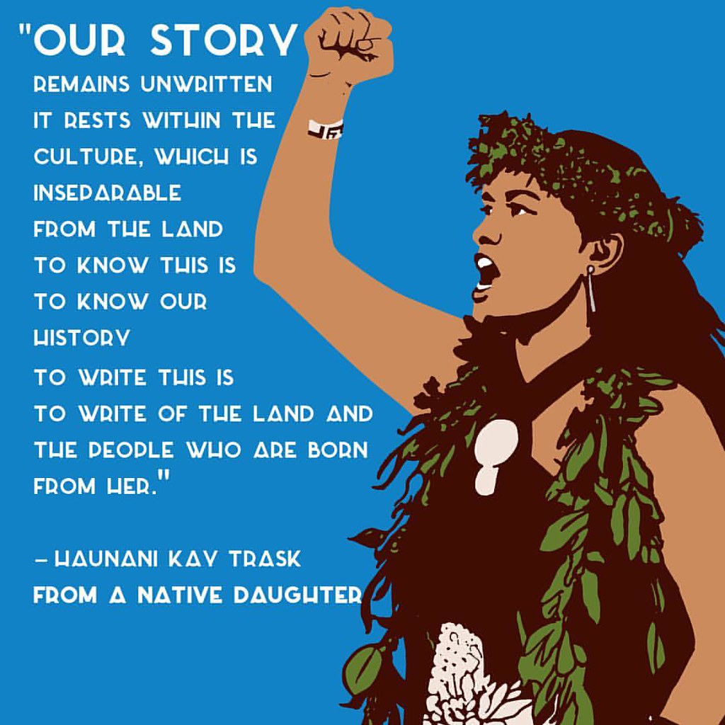 Trask, a Windward Oʻahu native was a critical voice in what she called, “the modern Hawaiian movement” and the broader Hawaiian sovereignty movement. Throughout her career she advocated for issues which support Indigenous nations around the globe. She worked with leaders in Indigenous communities from throughout North America to the Māori of Aotearoa (New Zealand) and the Basque people of Spain among others. Her international reputation led to her addressing United Nations gatherings in Geneva, Switzerland and Durban, South Africa.