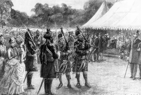 We finally paused before two tents which had been assigned to the party. Into one of these entered Her Majesty Victoria, no one going into her tent, excepting only the Prince of Wales. Even the princess, his wife, accompanied the other ladies into the tent which had been provided for our reception. Queen Kapiolani and I had the honor of being directly with this accomplished lady, while her husband, with a son’s devotion such as he has always so commendably shown, had gone to attend his royal mother. Close to us was a table sumptuously furnished with all that taste could desire; but however attractive to the eye, I noticed its viands were not liberally consumed.