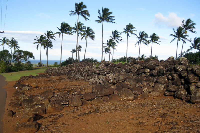 At the same time there arrived a man from Kauai in search of a human body to offer as a sacrifice at the temple of Kahikihaunaka at Wailua, on Kauai, and having seen the corpse of Kaopele on the beach, he asks and obtains permission of the feudal lord (Konohiki) of Waialua to take it. Thus it happens that Kaopele is taken by canoe to the island of Kauai and placed, along with the corpse of another man, on the altar of the temple at Wailua.