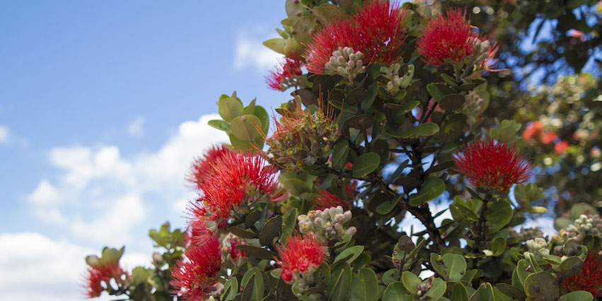 On reaching the place where the babe had been deposited, its body was not to be found. But lifting up his eyes and looking about, he espied the child perched on a tree, braiding a wreath from the scarlet flowers of the lehua (Metrosideros polymorpha). “I have come to take you home with me,” said the father. But the infant made no answer. The mother received the child to her arms with demonstrations of the liveliest affection. At her suggestion they named the boy Kaopele, from the name of their goddess, Pele.