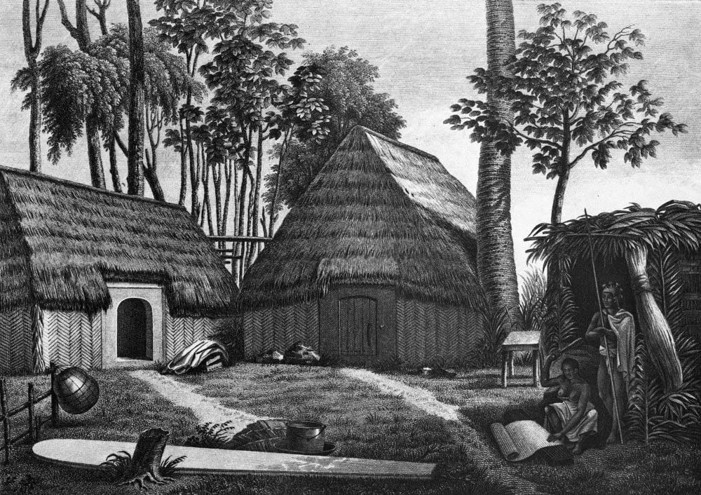 The clothing of the oldest time was sometimes made by tying dried banana leaves around the body, and coverings were made by throwing dry banana leaves over the body. Thus Kawelo was warmed and brought back to life, according to one of the most famous legends of the island Kauai.