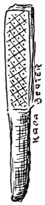 In the early time a flat stone was used upon which to pound out the sheets of kapa, but blocks of wood and long, heavy sticks were found to give the best results. These were called kua-kuku. A block cut in a certain way was very much liked by the women, for it gave back a soft sound with the rhythmic beat of the mallets, accompanied by their own chants and incantations to Maikoha or one of the other aumakuas.