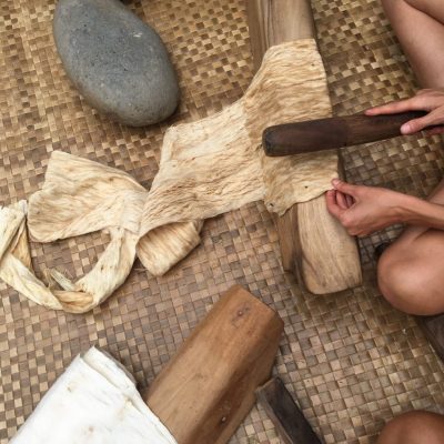 Reverently they touched the tree, broke off some of the branches, stripped off the bark, and pounded and pounded until the pieces were fastened together in a rude kind of cloth. Thus they found kapa, “the beaten thing,” and learned how to make it into small and large pieces and out of these fashion such clothing as met their need.