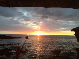 We sat in our favorite bar at Huggo’s On The Rock at the beach in Kona, this time not under a palm tree but under colorful, colorful giant umbrellas. Our table was filled with pupus by Ahia Natchos and we sipped our refreshing cocktails by Verginge Magarita and a Mai Tai. Surrounded by Hawaiian music and the sound of the glittering wave-rich ocean with the setting sun, the soul was the purest land of plenty and a blessing.