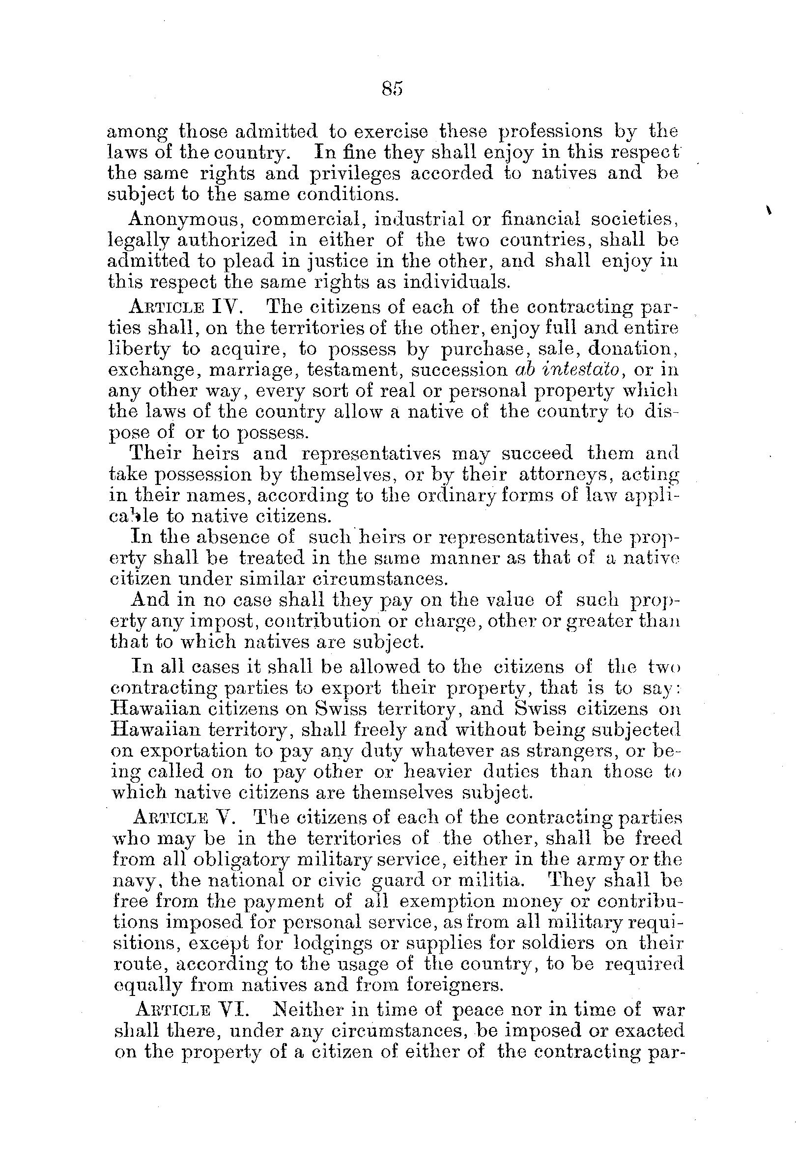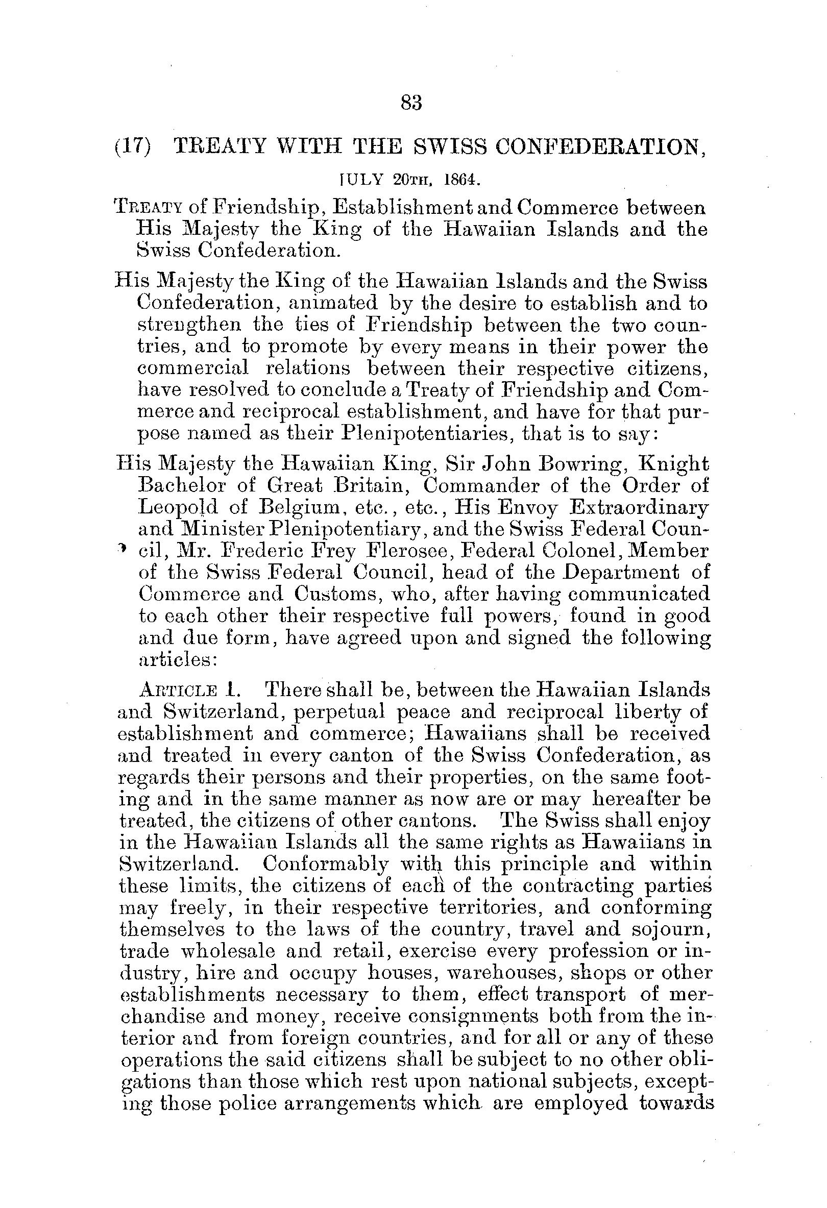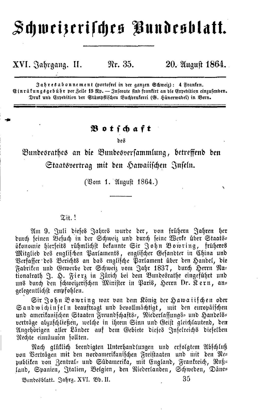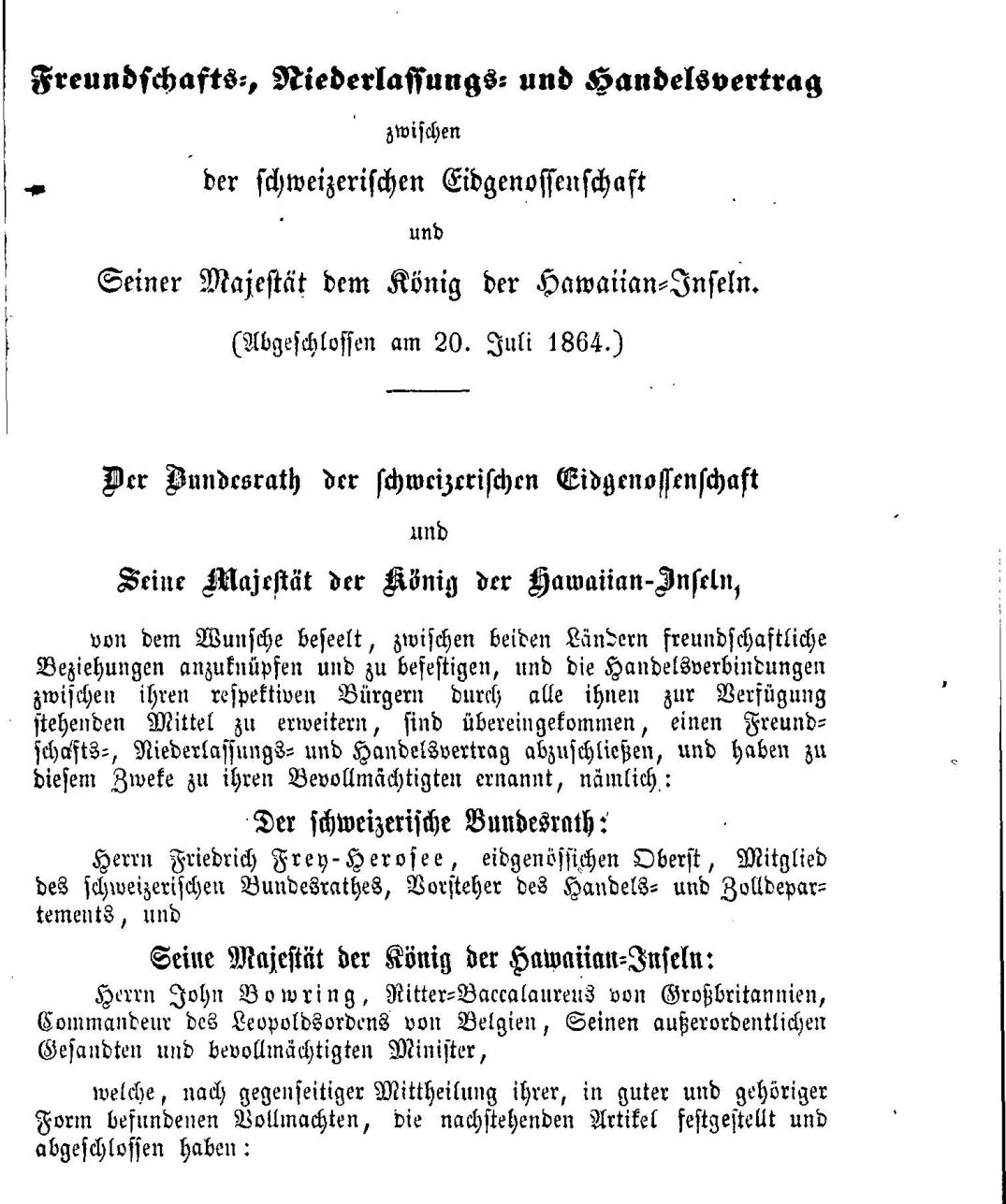 Schweizerbürgern ans hawaiianischem Gebiete, und den hawaiianischen