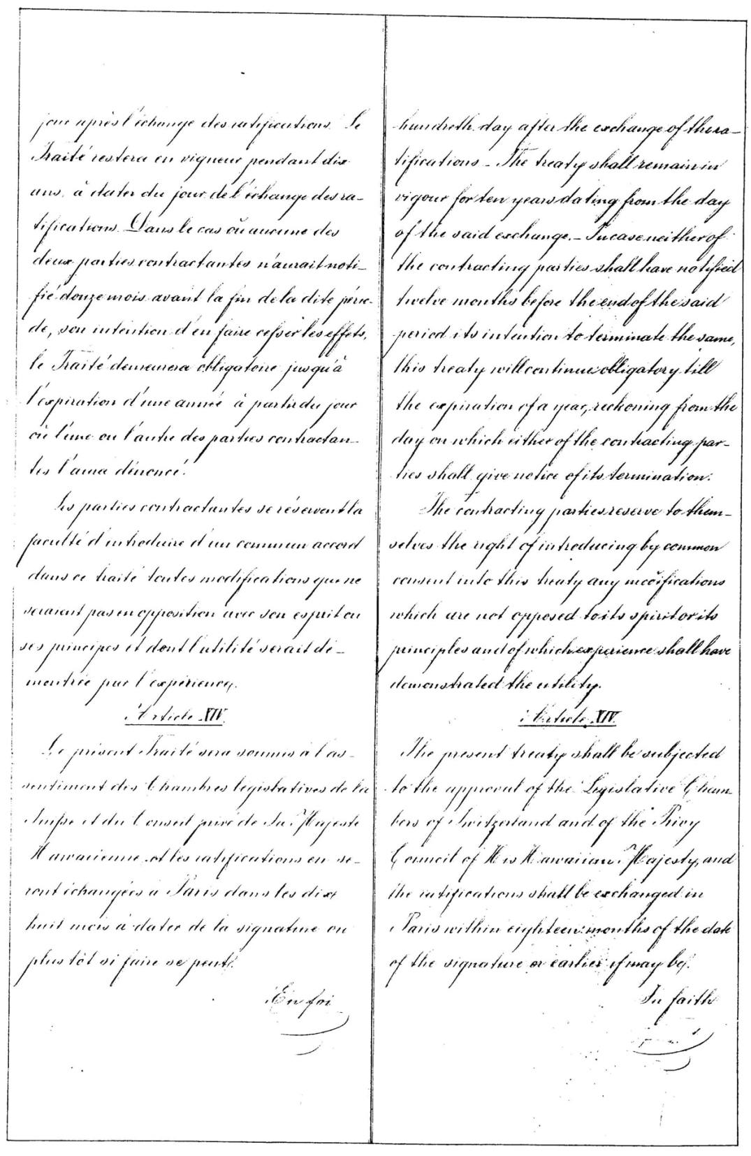 Die Stipulationen des gegenwärtigen Vertrages werden in beiden