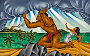 Ku and Lono responded “Live! live!” Then Ka-ne called again, “I come, awake! awake!” and the other two responded, “Awake! awake!” and the image became a living man.