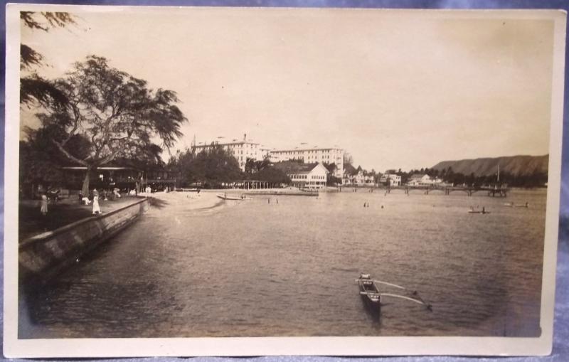 After a time the king of Kauai died and Aikanaka became king. The legends say the rats warned Kawelo, and he and his grandparents fled to the island of Oahu. The boat flew over the sea like a malolo (flying-fish), leaping over the waves at the strong stroke of Kawelo. The rats under their king were concealed in the canoe, and were carried over to the new home. Kawelo’s elder brothers and parents had been living for some time on the beach of Waikiki near Ulukou [Site of Moana Hotel] by the mouth of the stream Apuakehau. The grandparents took Kawelo and Kamalama inland and found a beautiful place among taro patches and cultivated fields for their home. It was said that when they came to the beach one young man went down into the water and carried the canoe inland. Kawelo called him and adopted him as one of the family. The boy’s name was Kalaumeke (A-kind-of-ti-leaf). The boy said he was not as strong as he appeared to be, for he had the aid of many little long-whiskered people; his real power lay in spear-throwing and club-fighting. There was only one other young man who was his equal—a youth from Ewa, whose name was Kaeleha. Kawelo sent for this man and took him into his family. They dwelt for some time, cultivating the place where the royal lands now lie, back of the Waikiki beach.