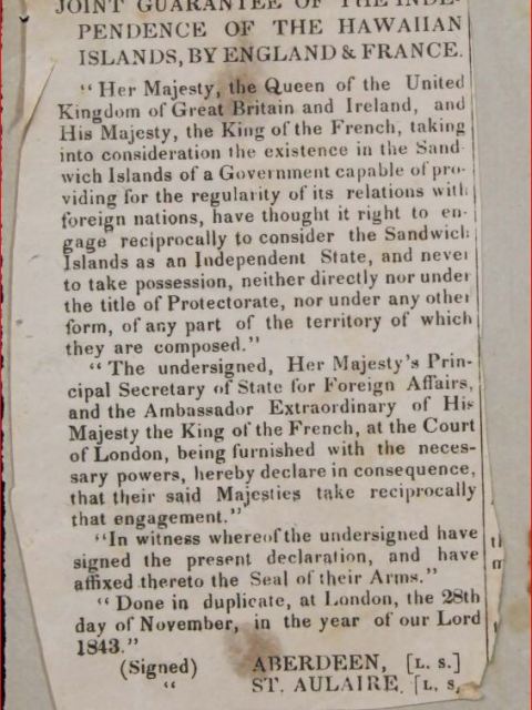 Friendship Treaty USA & Hawaii Kingdom – 1849